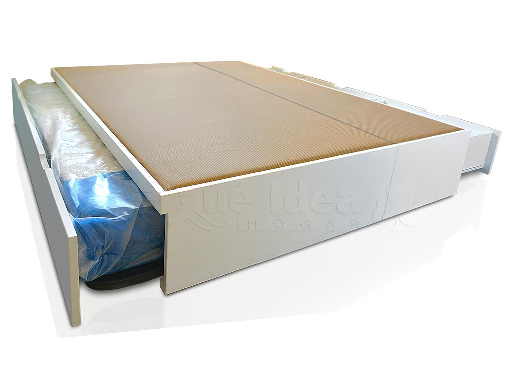 Cama de madera con cajones de matrimonio lacada en color blanco brillo
