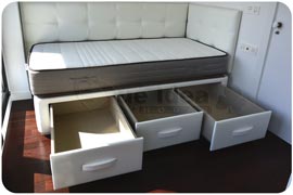 Los canapés individuales Cajones Laterales cama con cajones modelo Plus ha sido desarrollada para aprovechar al máximo el espacio interior.