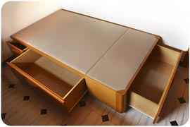 Los canapés individuales con cajones modelo Plus con acabado en madera ha sido desarrollada para aprovechar al máximo el espacio interior.
